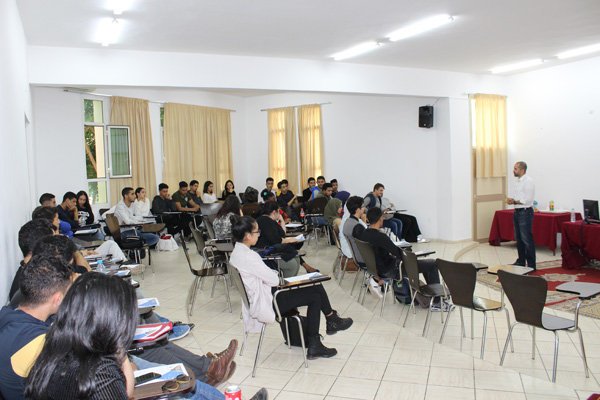 Plus tard dans la journée, M. Moutahir a rencontré les étudiants de l'IIHEM pour présenter JWU et répondre aux questions concernant les échanges.