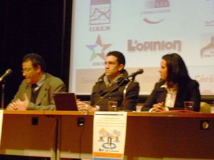 Une autre conférence organisée sous le thème de « l’entreprenariat entre le discours et la réalité ». Cette conférence s’est déroulée le 20 février 2010, au siège de la Bibliothèque Nationale du Royaume à Rabat. Elle a été animée par Mr. Joseph Chaînes, expert international, Mme. Omayma Achour, Conseillère du Ministre de l’Emploi et de la Formation Professionnelle, Mr. Iraqui, Vice-Président de la CGEM et Mr. Hamaoui du REEM.
